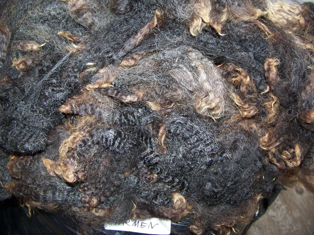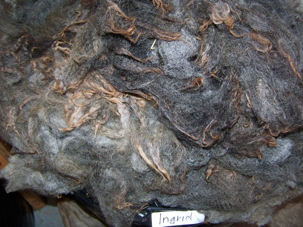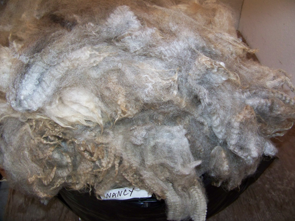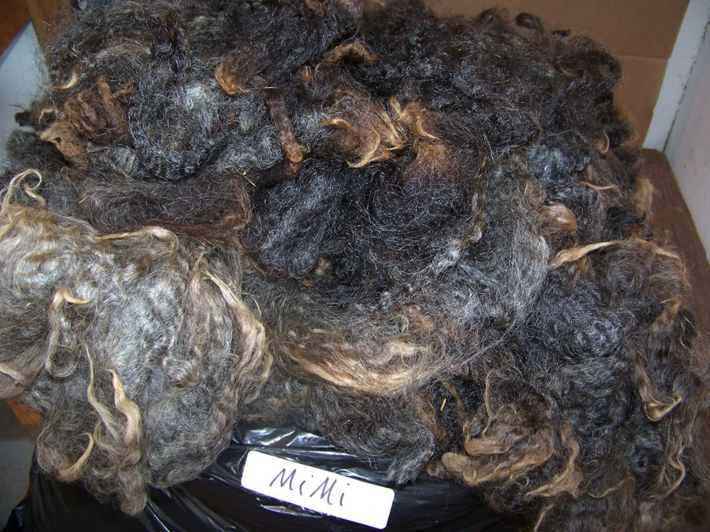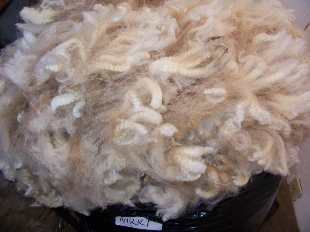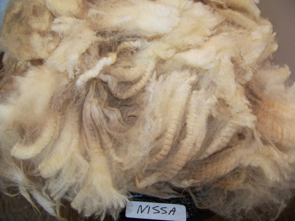 Daughter of Nikki, Nissa's fleece is also beautiful. Medium crimp, lustrous, very soft with a long staple, with a slight spring to it...