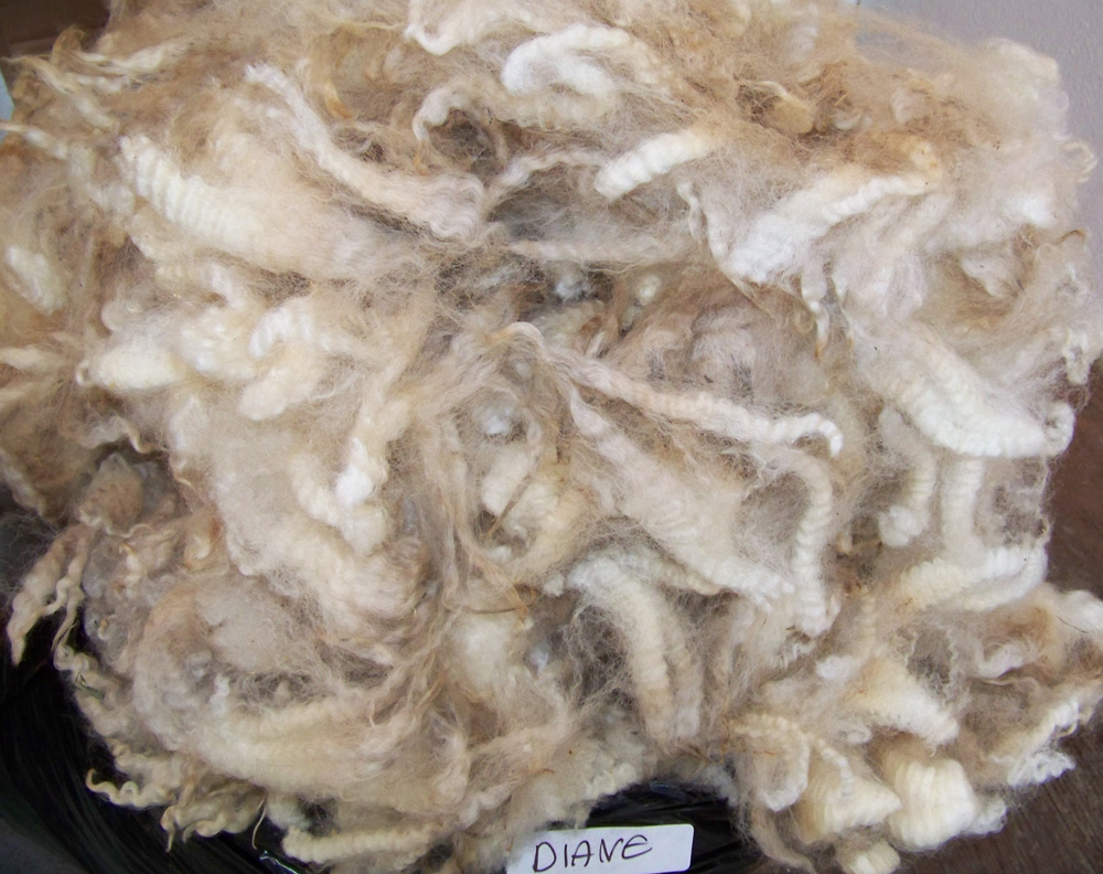 Daughter of Diane, Dinah's fleece is beautiful, classic Romney-style. Fine to medium crimp, very lustrous, nice handle!