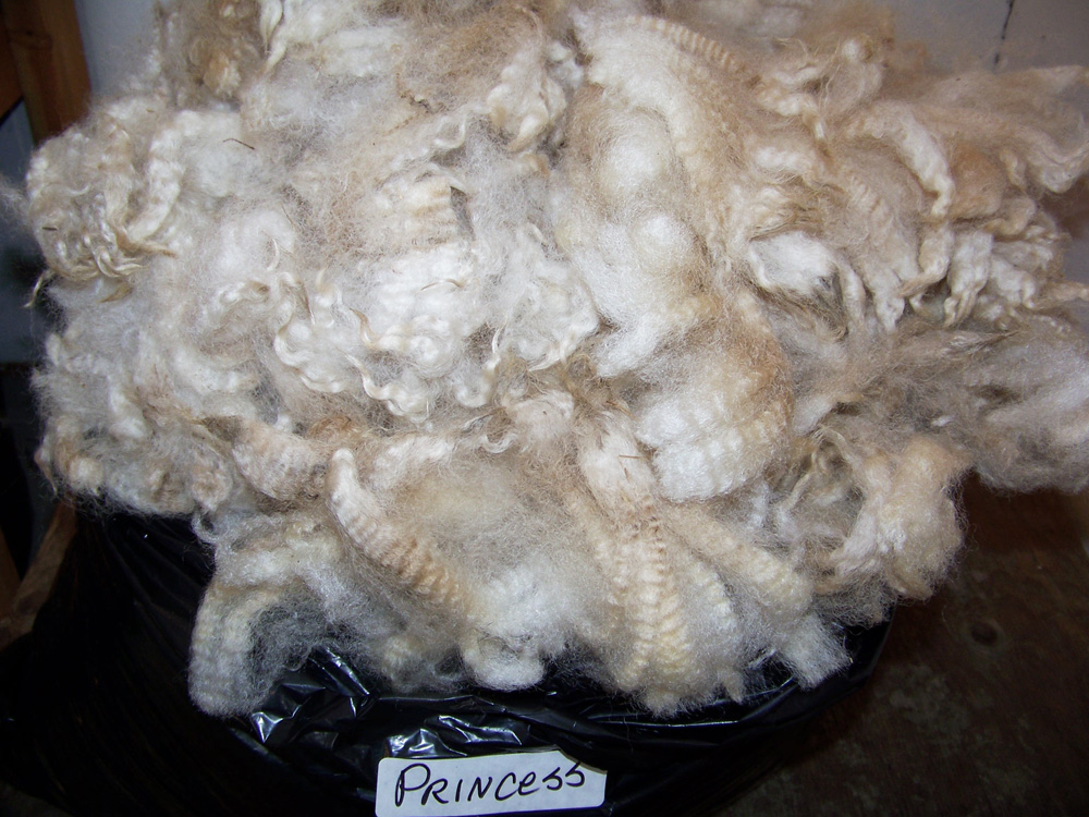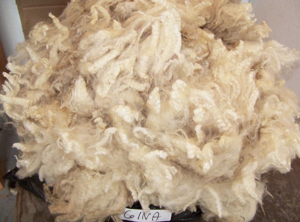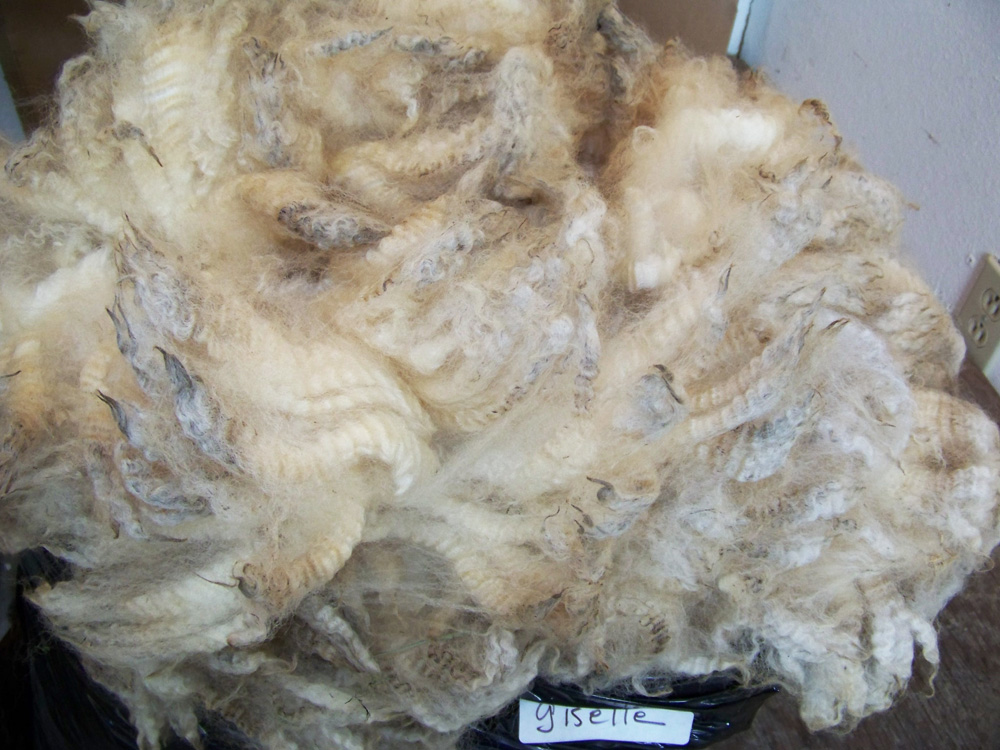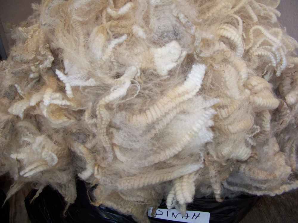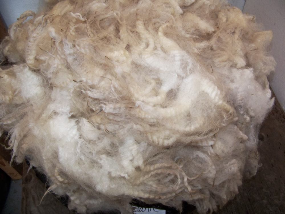 This is another classic Romney-style white fleece. It has a long staple, very distinct locks,
