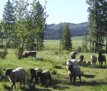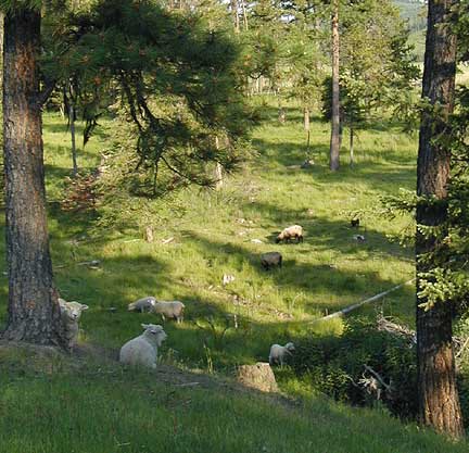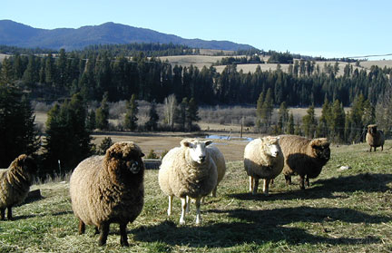 Romney-Montadale crosses Mary & Dorothy. Below, some other members of the SkyLines family are also enjoying the warm afternoon sun . . . Three-fourths